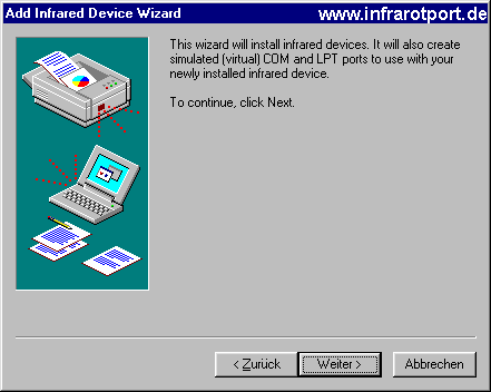 Es startet sich der "Add Infrared Device Wizard" ("Setup-Assistent für Infrarotgeräte"):