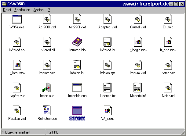 Für die Infrarotport-Installation unter Windows 95 (erste Ausgabe) mußt Du zunächst den Microsoft-Treiber downloaden: irda2.0.zip